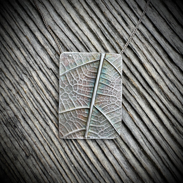 I’ve always been fascinated by how nature tells its story in textures- in the veins of a leaf, the needles of a cedar branch, or the rough edges of bark. That’s where my Shield Pendants come from: the idea of preserving those details in sterling silver, like creating a fossil of the world as it is right now.